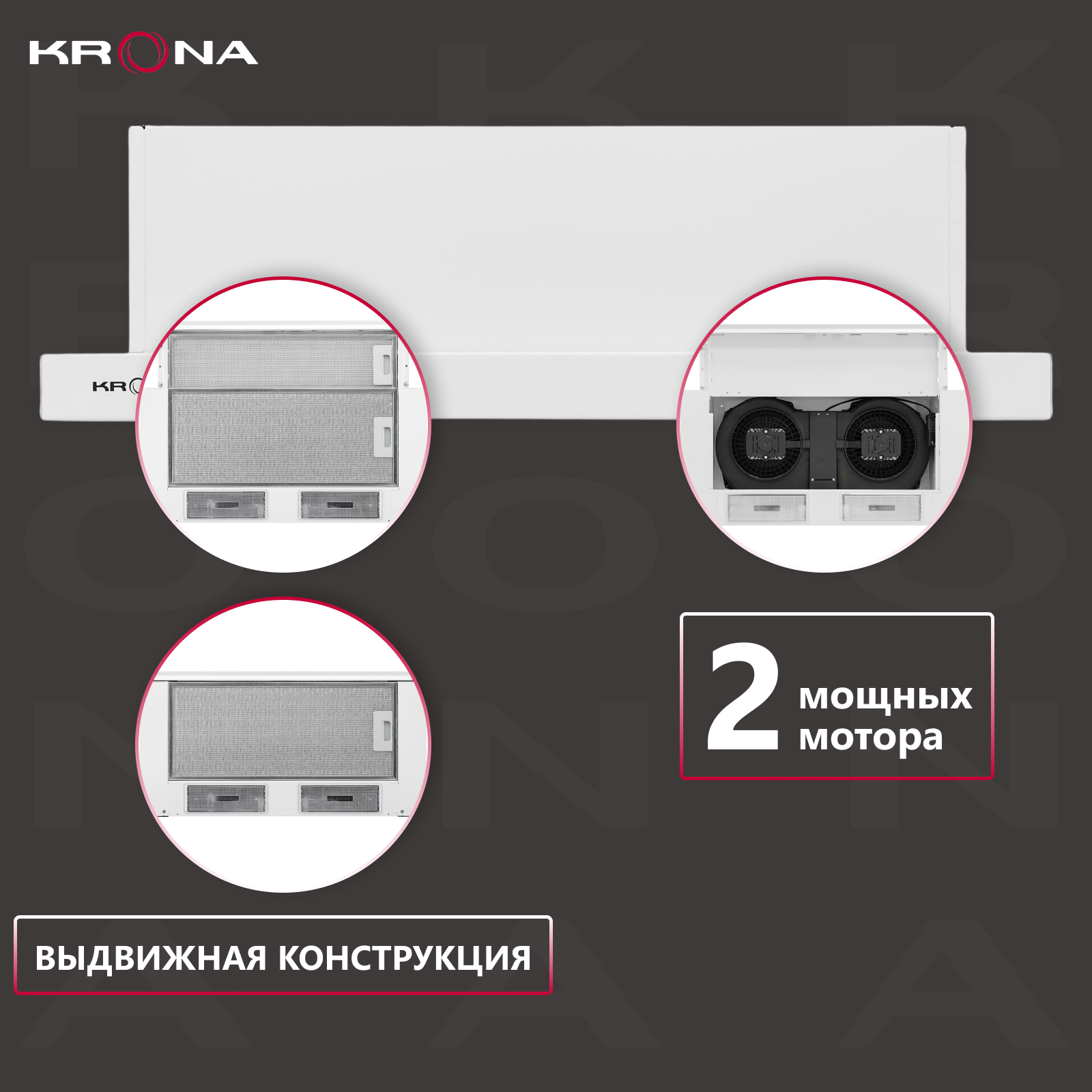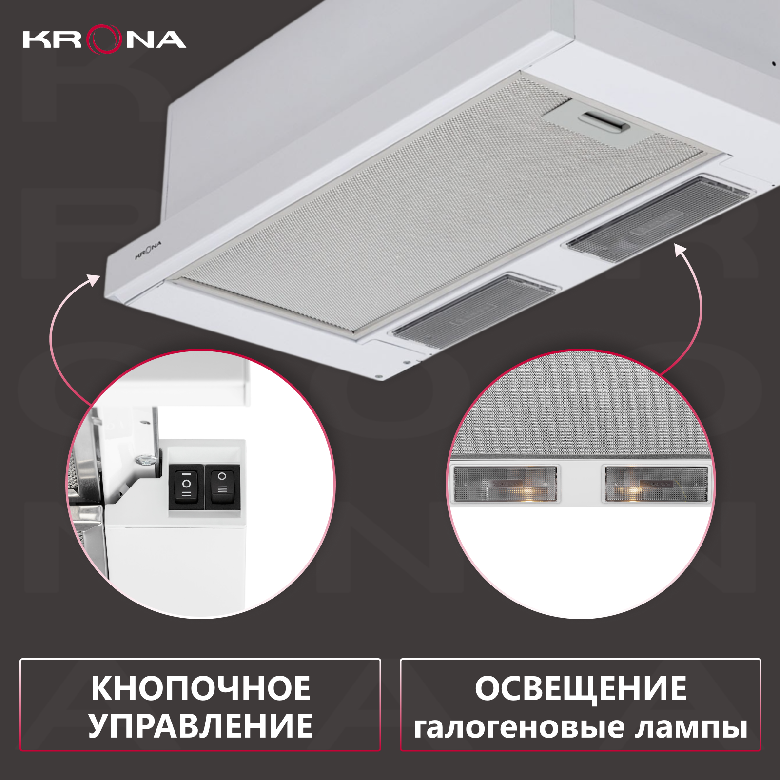 Встраиваемая вытяжка Krona Kamilla 600 2 motors, управление кулисные переключатели, 2 мотора, белый