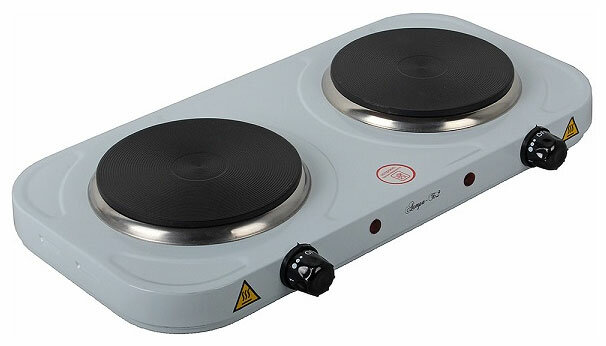 Плитка электрическая Великие Реки Астра-Б2, мощность 1000Вт/1000Вт, 2 конфорки чугунные блины, плавная регулировка температуры, защита от перегрева, индикатор сети
