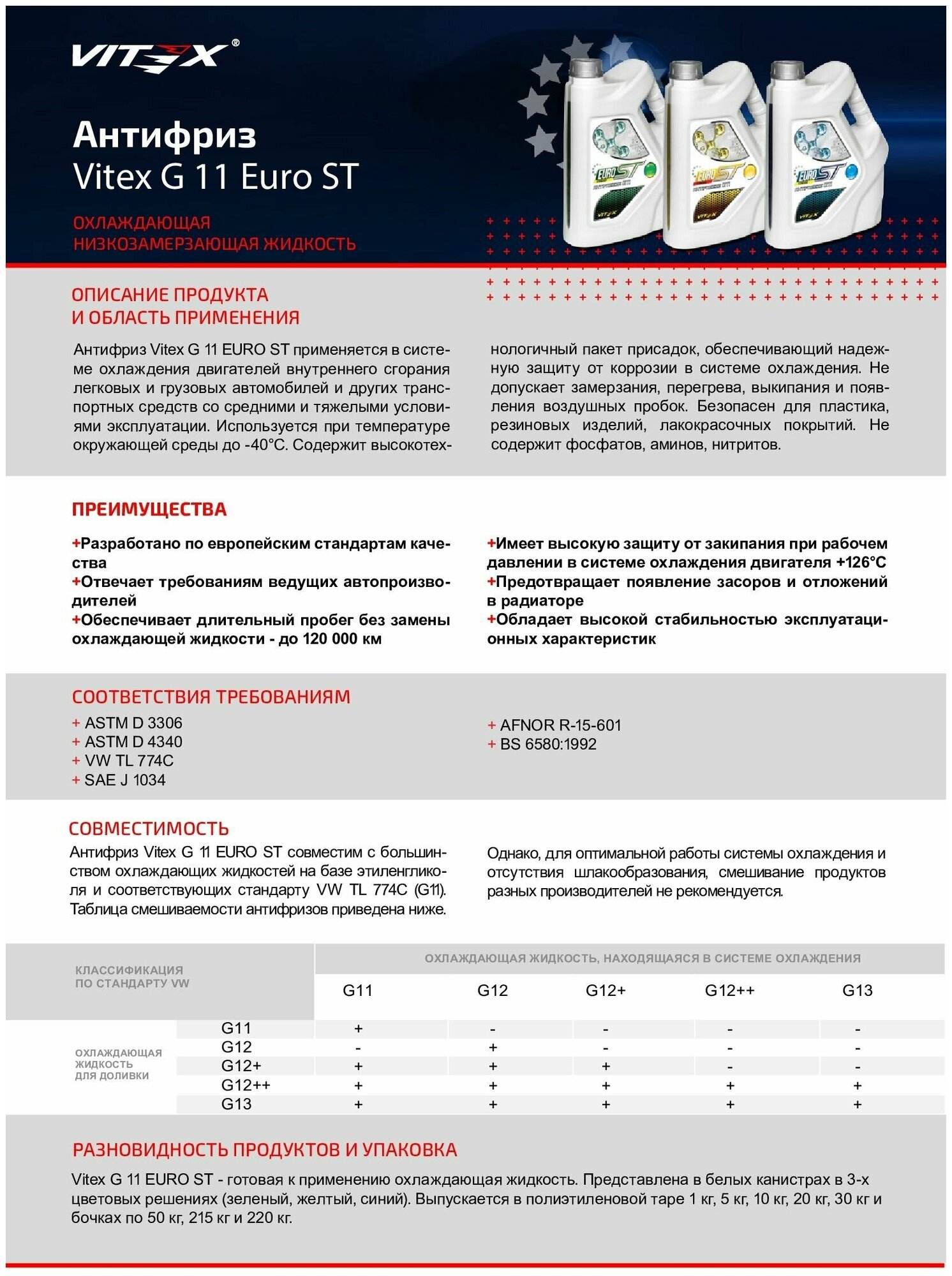 10 цен на Антифриз VITEX G11 EURO ST 1 кг.