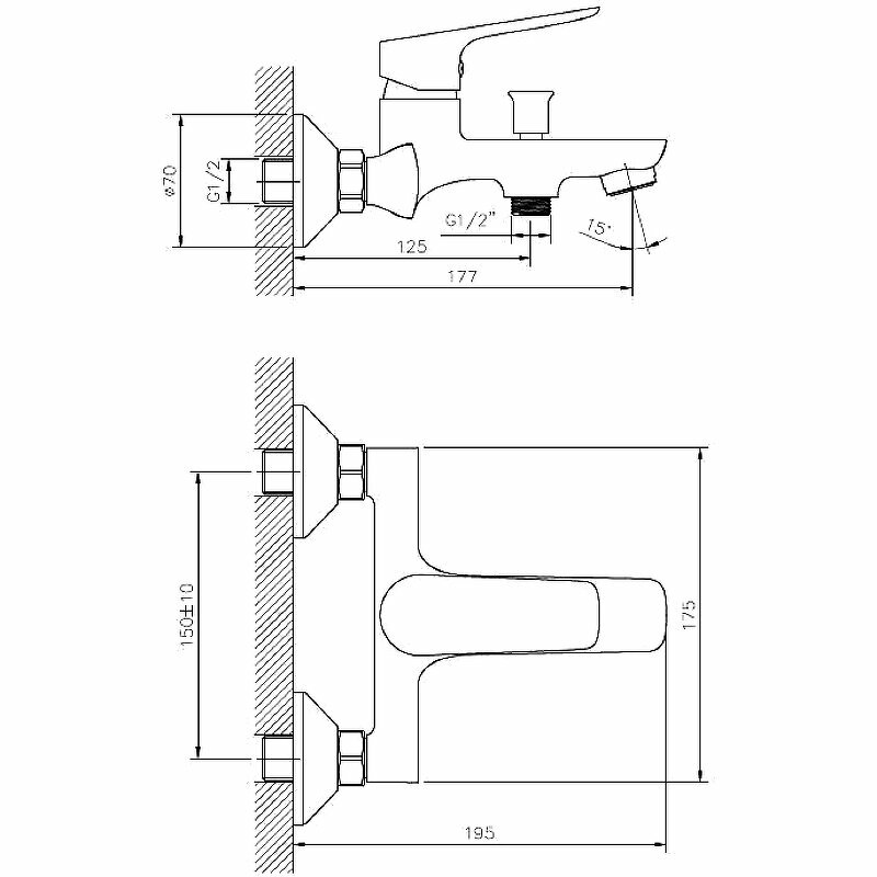 Смеситель на раковину настенный Эверест B46-350 с круглым поворотным изливом, кран-буксы 1/2", хром