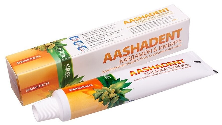 Зубная паста AASHADENT кардамон И имбирь комплексная защита, уход за зубами и дёснами, Aasha Herbals, 100 г.