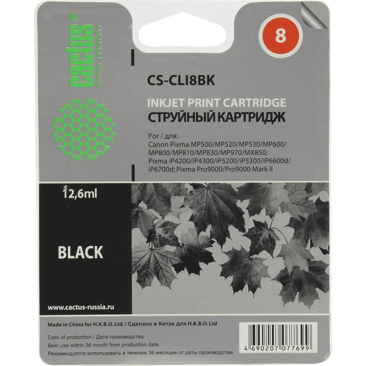 Картридж Cactus CS-CLI8BK, для Canon, 12,6 мл, черный информация: