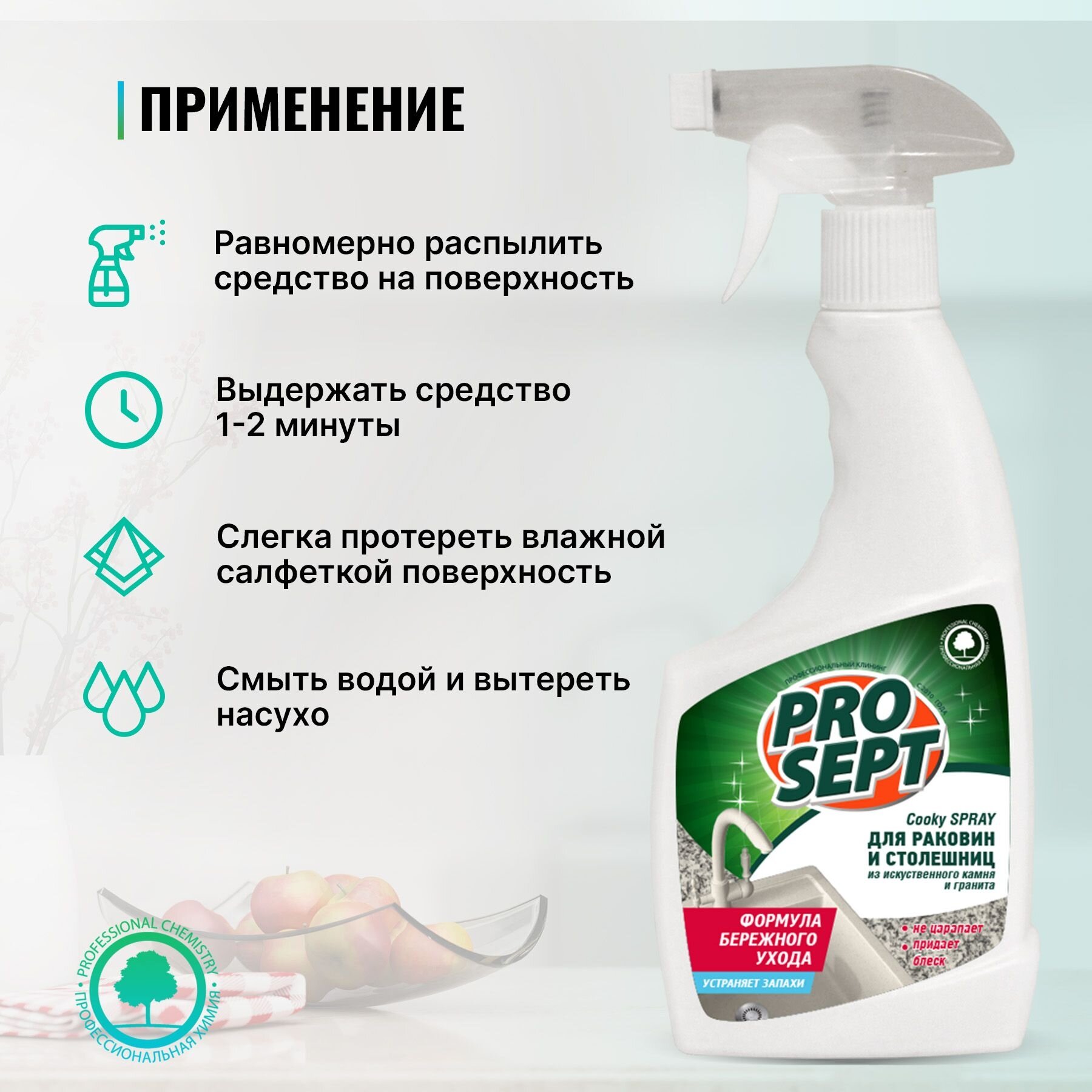 10 цен на Prosept Cooky Spray Спрей для столешниц и раковин из искусственного камня и гранита, 500 мл