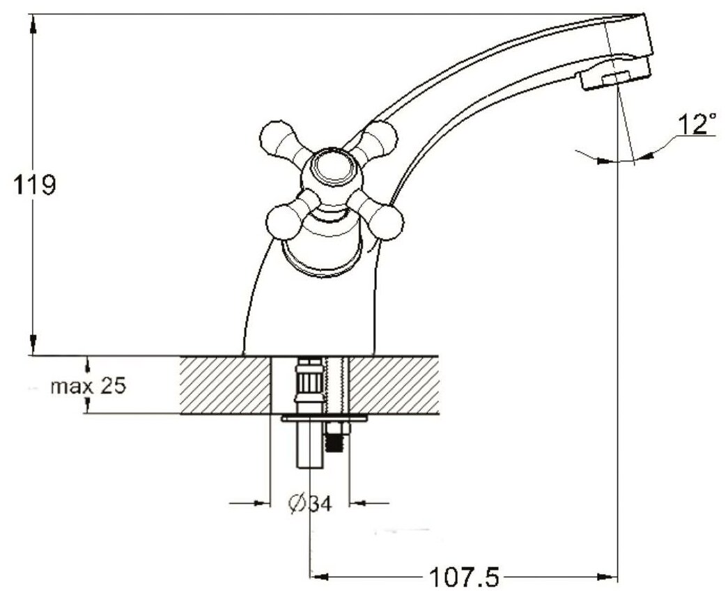смеситель G.Lauf для умывальника монолитный, кер. (1/2) 180°, шпилька QMT1-A722 информация: