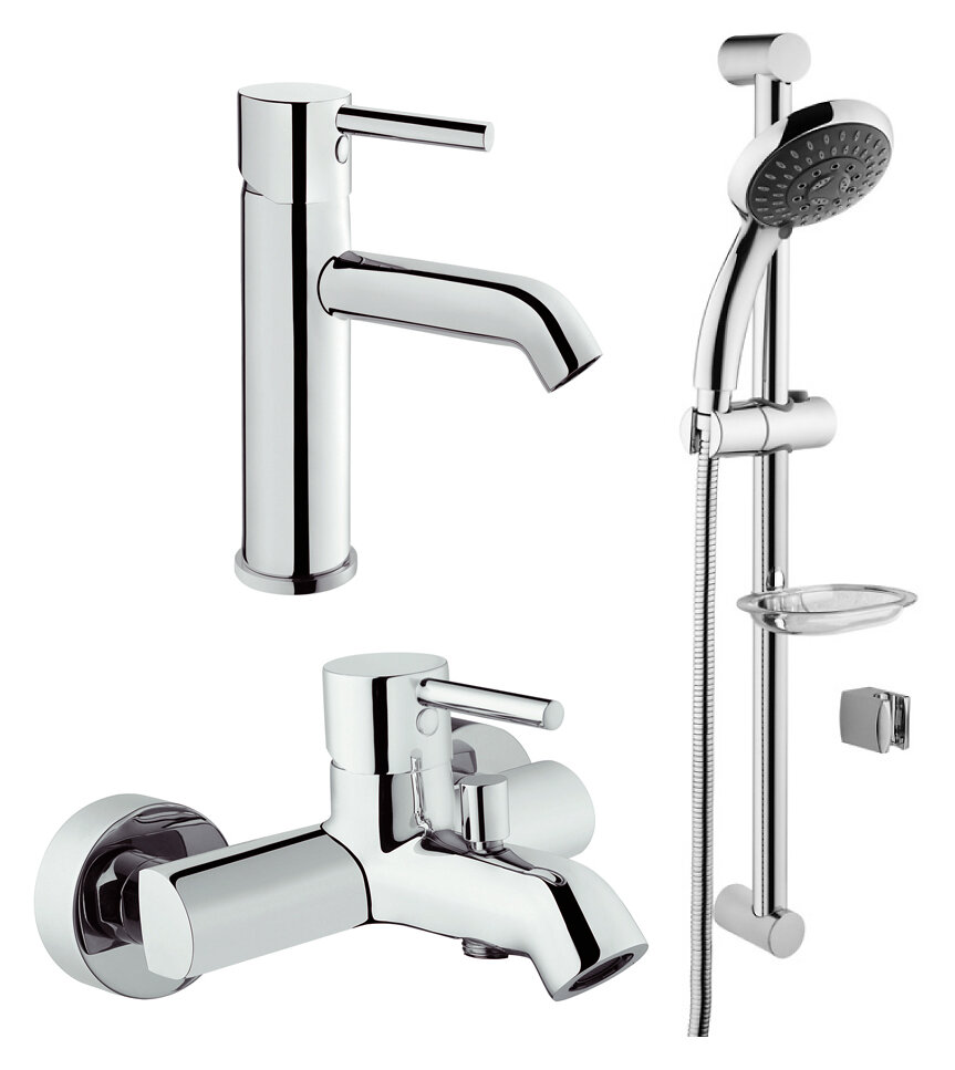 Набор смесителей Minimax S 3 в 1 (смеситель для раковины, смеситель для ванны и душа, душевой гарнитур 5-режимный)