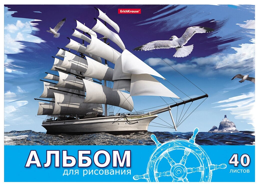 Отзывы на ErichKrause Альбом для рисования А4, 40 листов на клею "Морская прогулка", обложка мелованный картон, жёсткая подложка, блок 120 г/м2