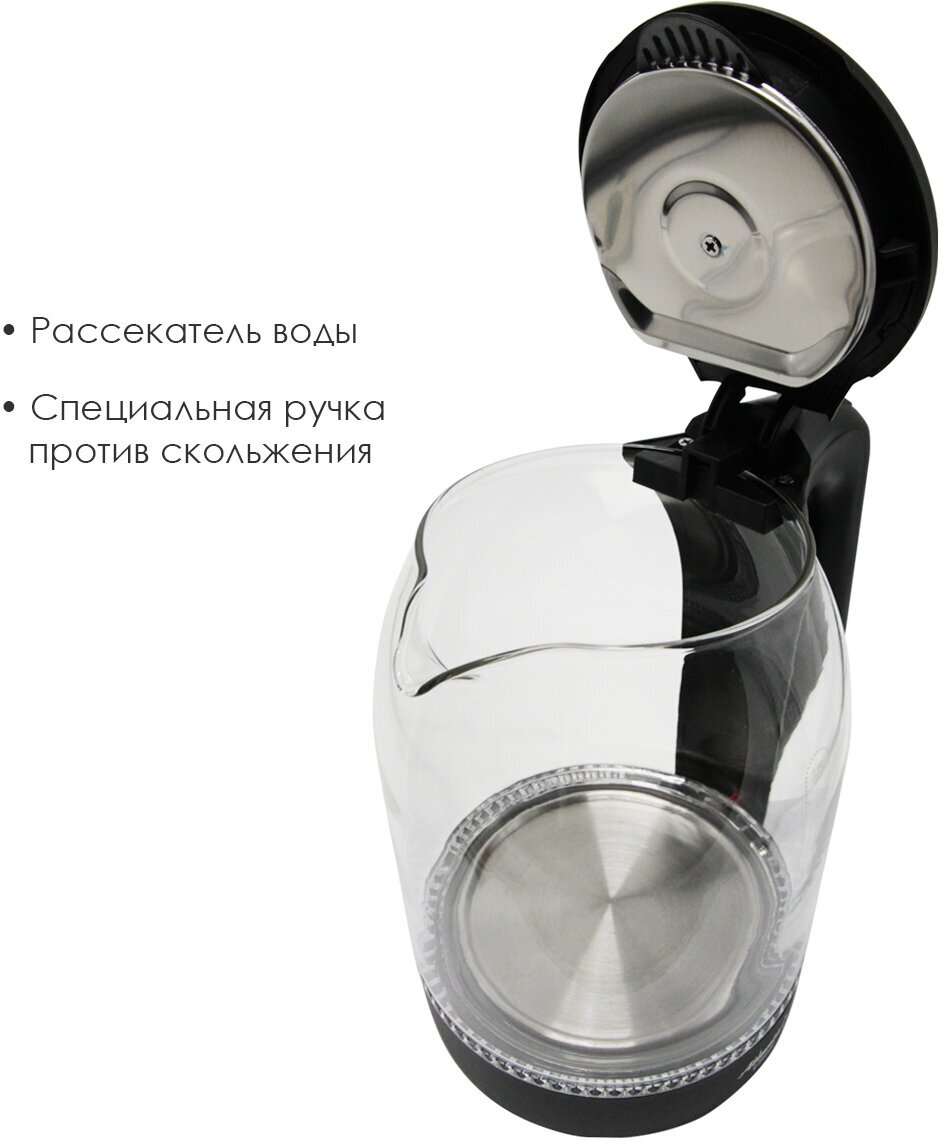 Чайник электрический стеклянный LEX LXK 30010-1, объем 1,2 л, подсветка.