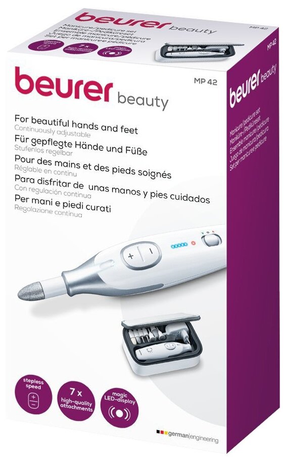 Набор для маникюра и педикюра с 7 насадками Beurer Mp42, белый .