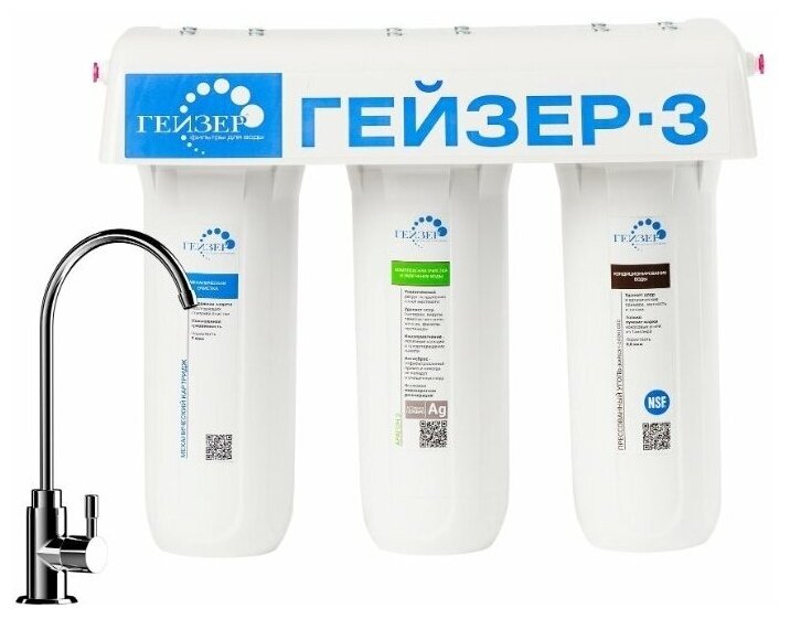 Фильтр под мойкой Гейзер 3ИВЖ Люкс белый кран №3