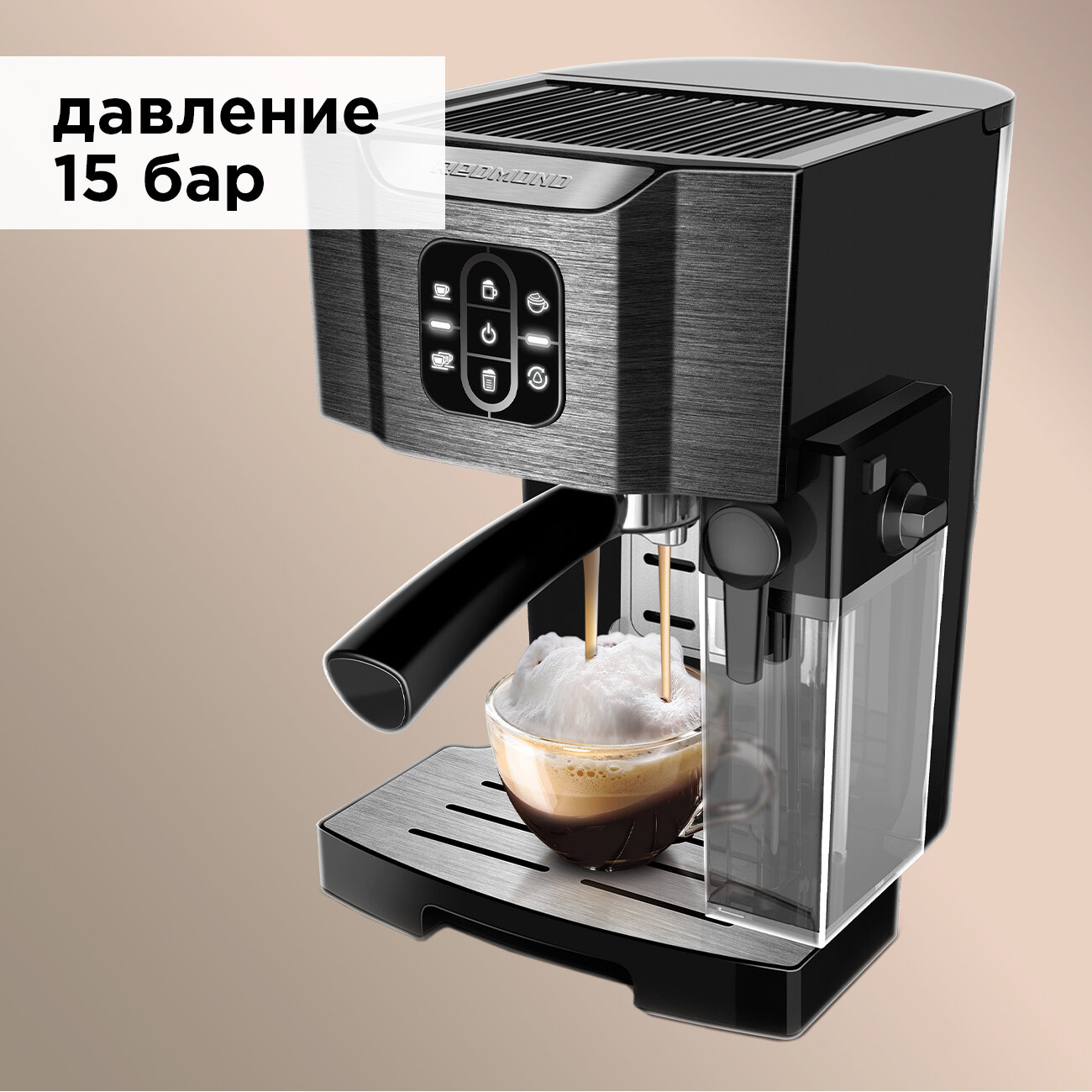 10 цен на Кофеварка рожковая REDMOND RCM-1512, черный/серебристый