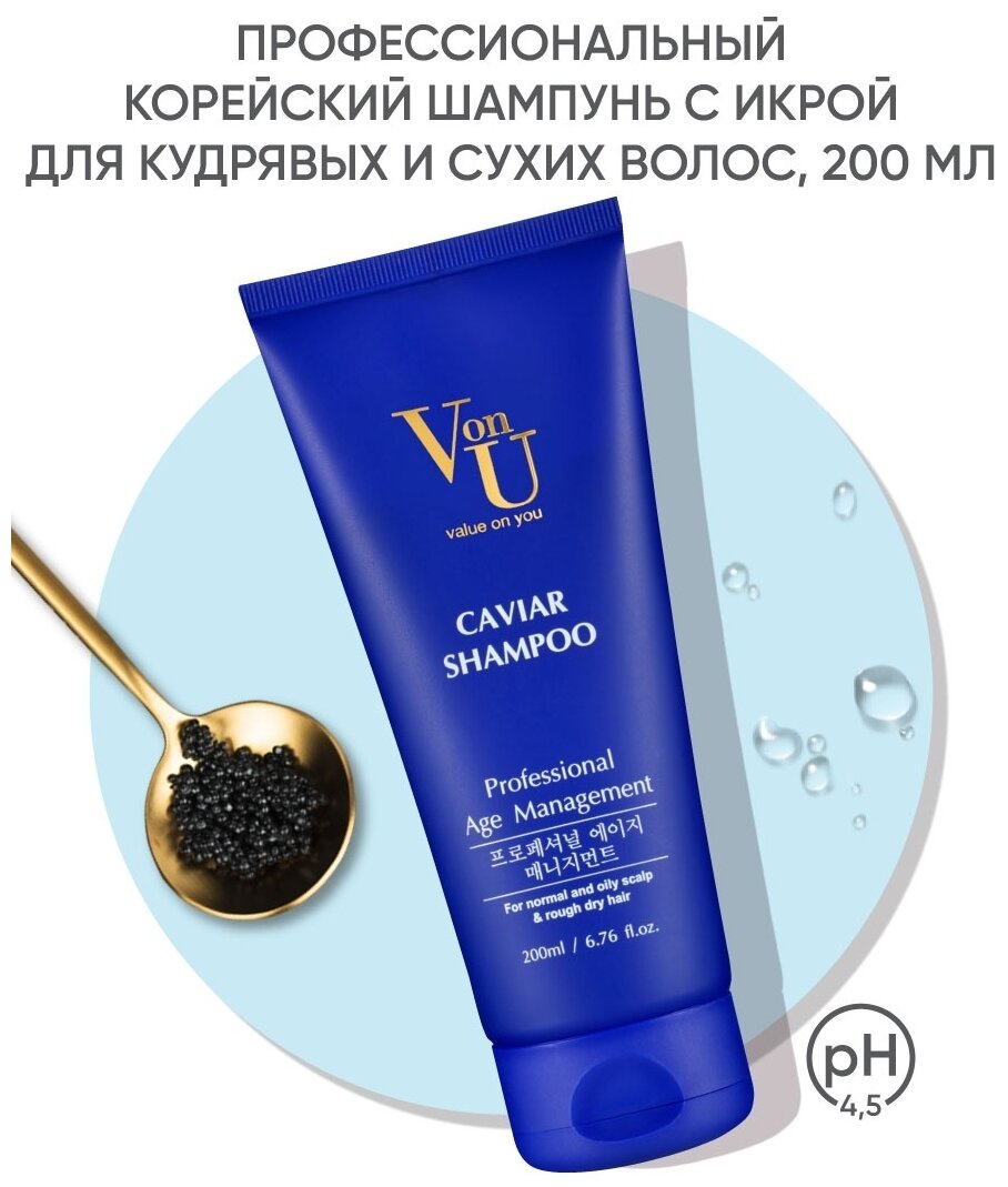 10 цен на Шампунь для волос для жирной кожи головы и сухих волос Caviar Shampoo Von-U 200 мл