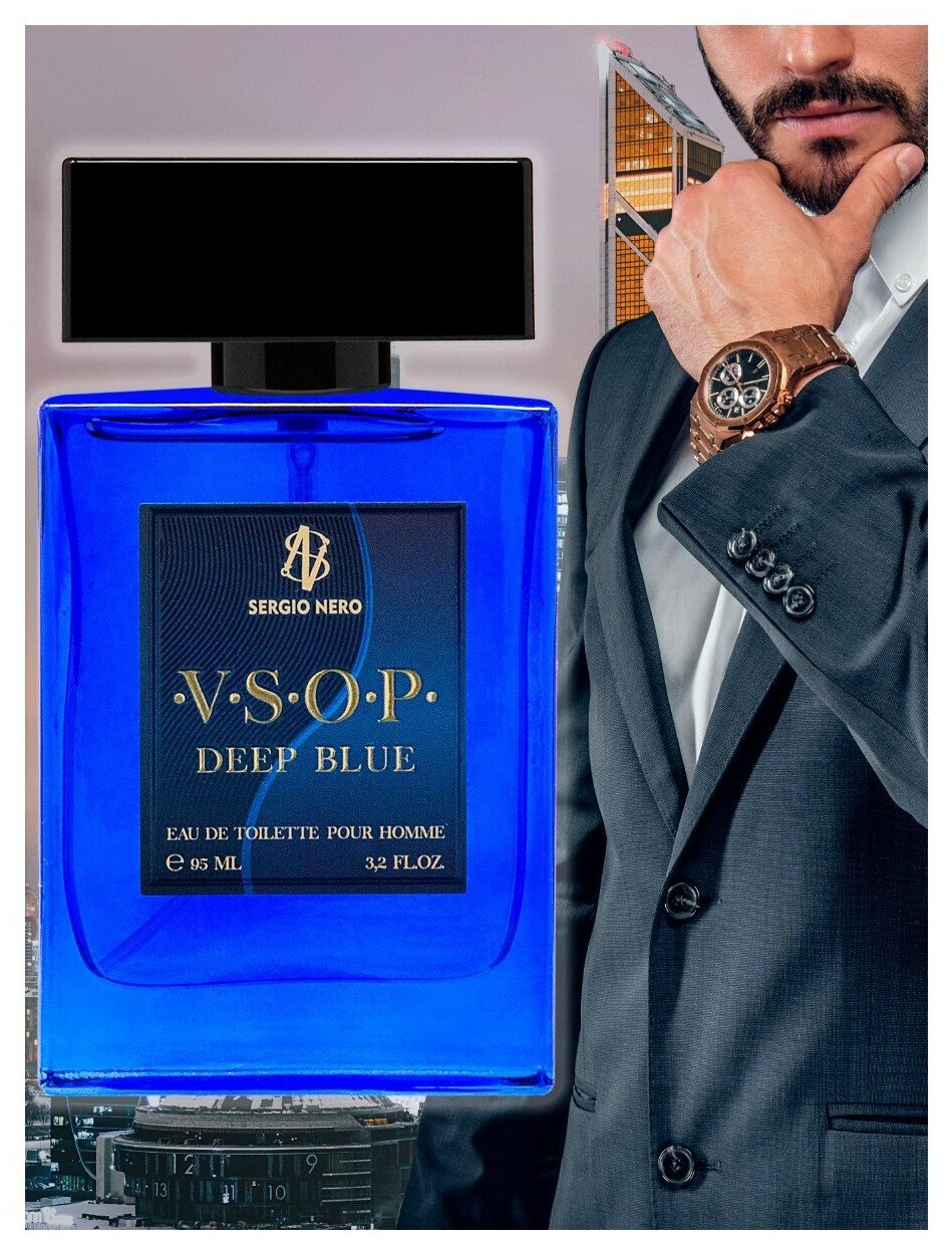 Sergio Nero Туалетная вода для мужчин Vsop Deep Blue (Всоп дип блу) древесный, пряный, спрей 95 мл в футляре