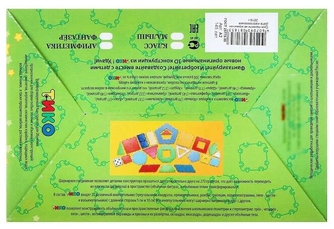Конструктор тико "Арифметика" 145 деталей цветная коробка информация: