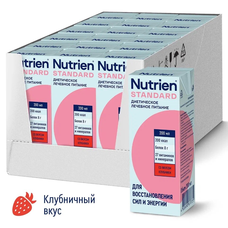 Nutrien Standard 200 мл со вкусом клубники готовое к употреблению жидкое энтеральное питание (для зондового и перорального использования), 18 шт информация: