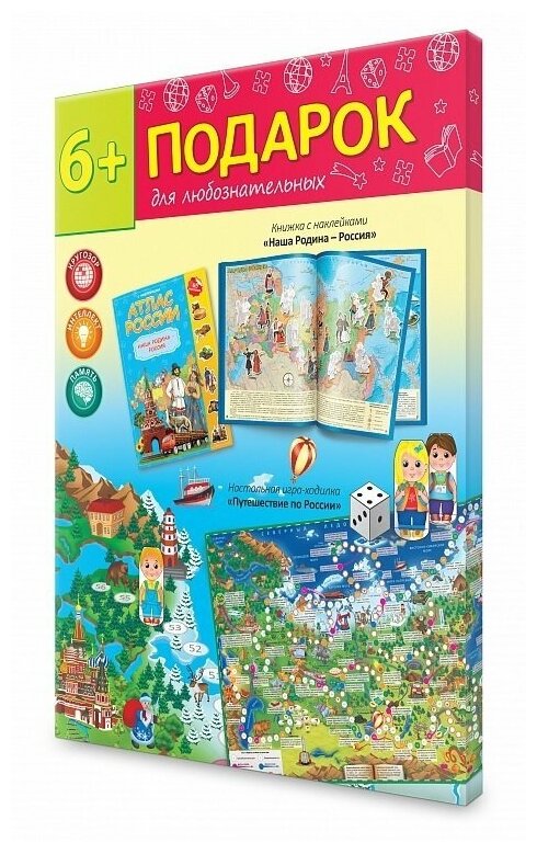 Подарочный набор для любознательных "Россия": атлас с наклейками + игра-ходилка 9258937 информация: