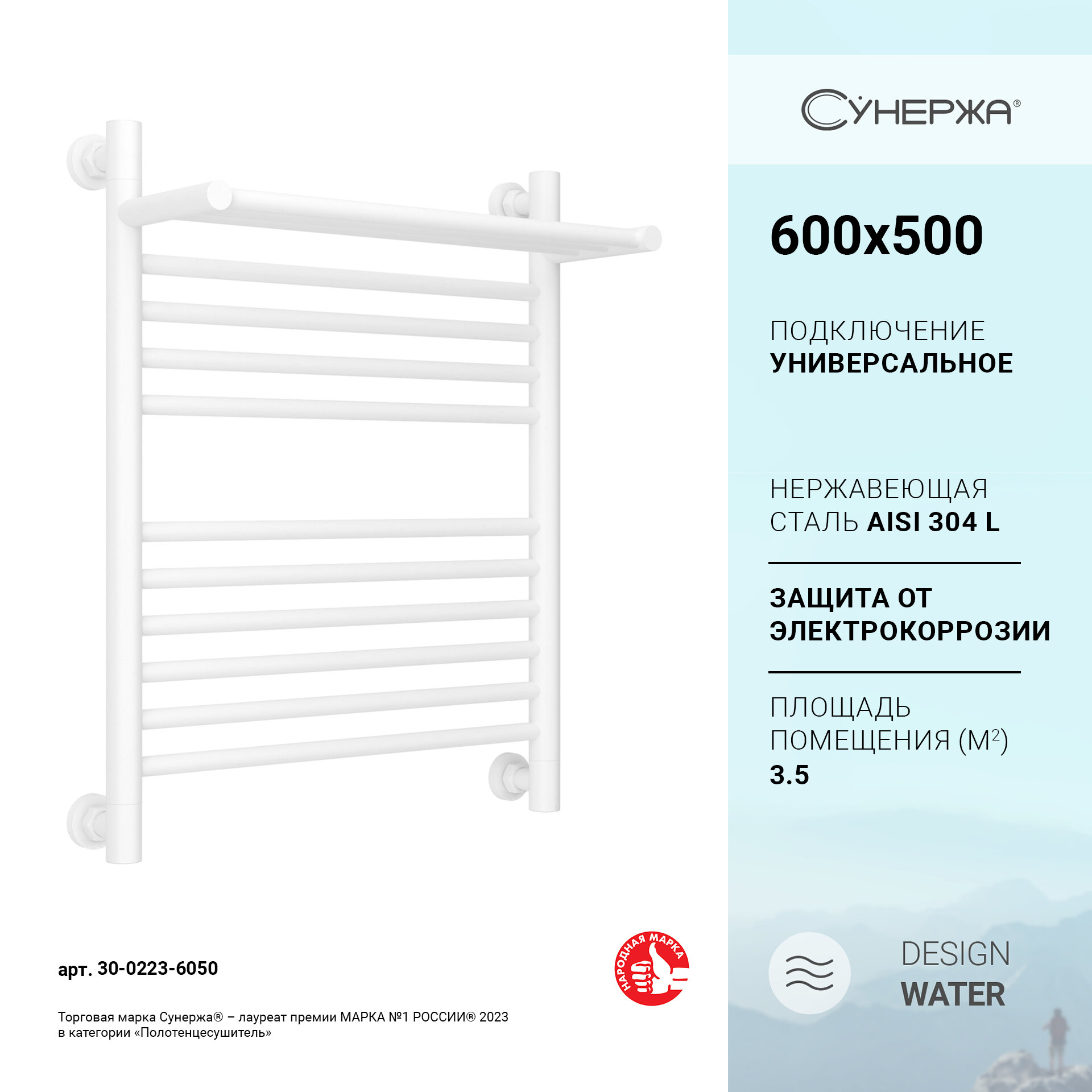 10 цен на Водяной полотенцесушитель Сунержа Богема с полкой+ 600x500 матовый белый арт. 30-0223-6050