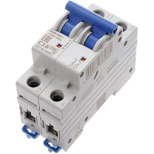 Отзывы на Выключатель автоматический модульный 2п C 16А 6кА OptiDin BM63-2C16-УХЛ3 КЭАЗ 260599