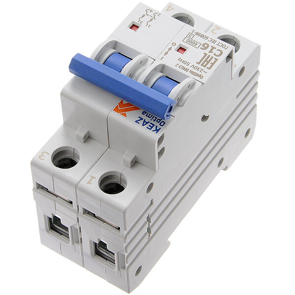Выключатель автоматический КЭАЗ 2-полюсный (2P) 16А хар. C тип AC 6кА 260599 OptiDin BM63 (2 модуль)