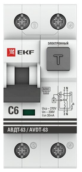 DA63-6-30e Дифференциальный автоматический выключатель EKF АВДТ-63 PROxima 1П+N 6А 30мА, тип А, 6кА, C, электронный информация:
