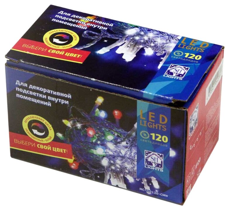 10 цен на Гирлянда SHLights с матовым колпачком, 120 LED, 12м, для помещений, 8 режимов мигания, белый/мульти (MC-ILD120-CMW)