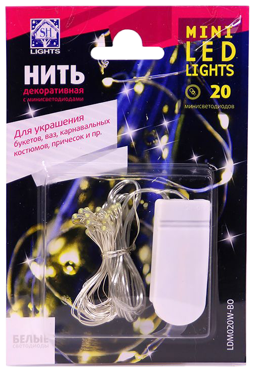 10 цен на Гирлянда SHLights, 20 LED-минидиодов, для помещений, на батарейках, белый (LDM020W-BO)