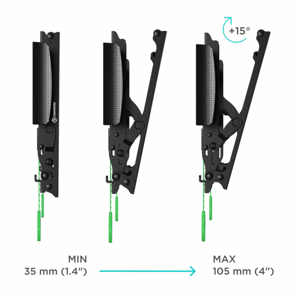 Кронштейн ONKRON TM4, для ТВ, наклонный, 17"-43", до 36.5 кг, 35-105 мм от стены, черный 1 667 ₽