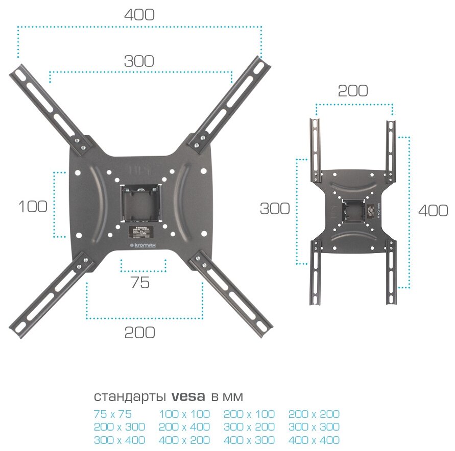 Комплект адаптеров Kromax ADAPTER-400, для ТВ, 20-65", VESA 400x400, до 40 кг, черный