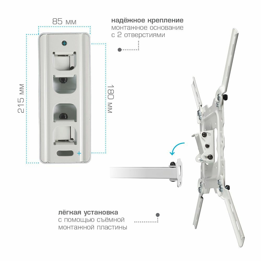 Кронштейн для телевизора Kromax для телевизора DIX-18 белый 22"-65" макс.40кг настенный поворот и наклон 4 132 ₽