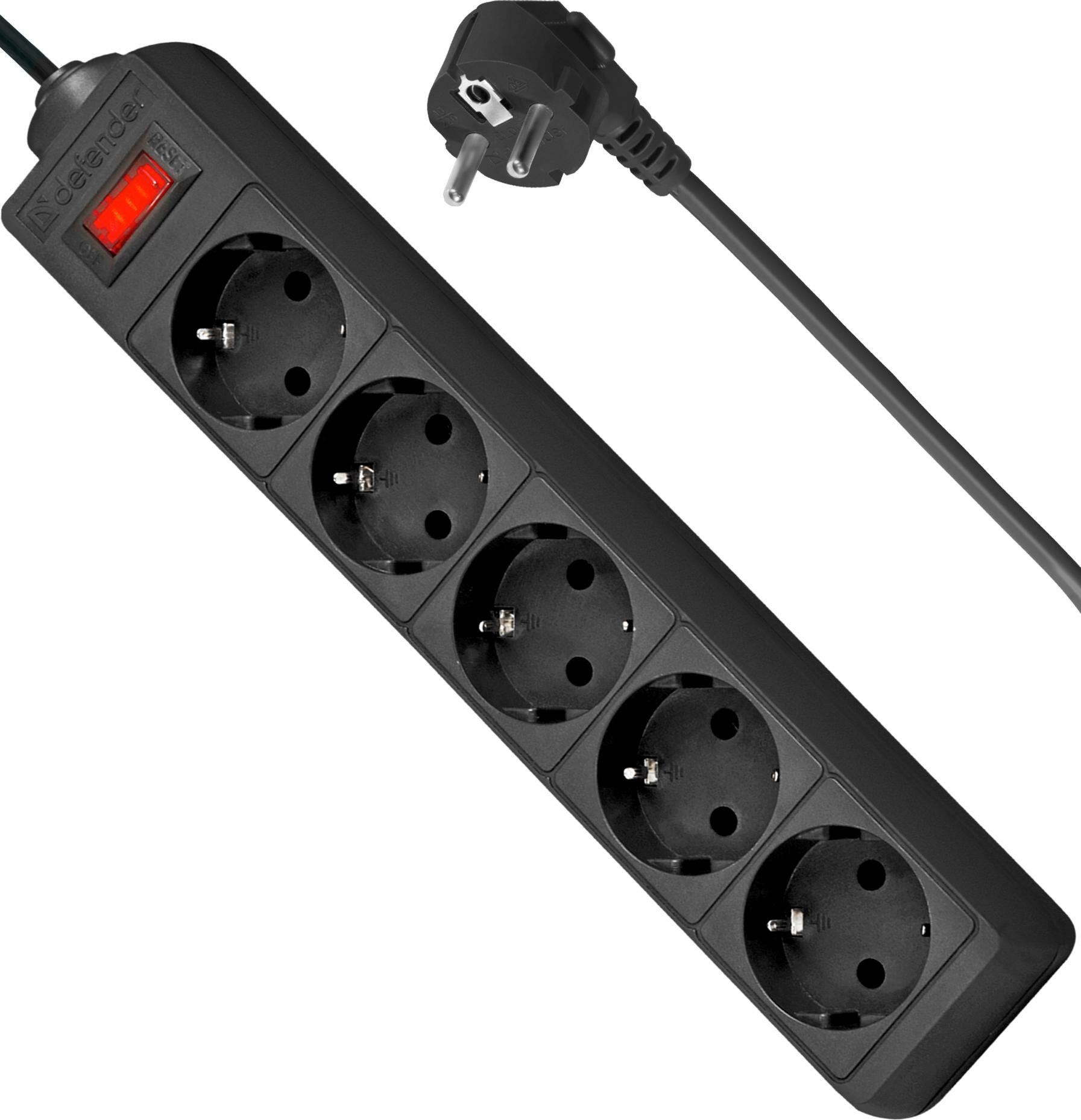 10 цен на Сетевой фильтр Defender ES черный 5.0 m 5 розеток