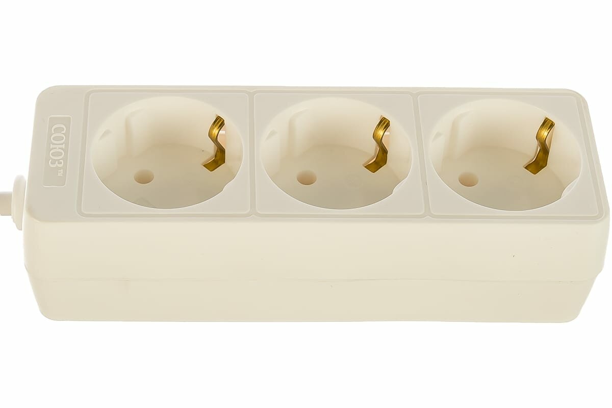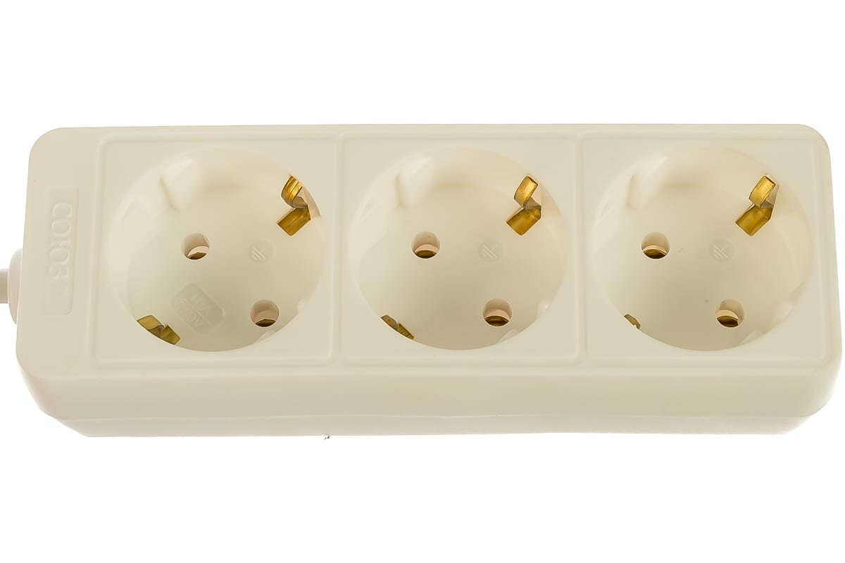 Удлинитель бытовой 3 гнезда, 5 м, ПВС, с заземлением, 2200 Вт, Союз, 481S-9305