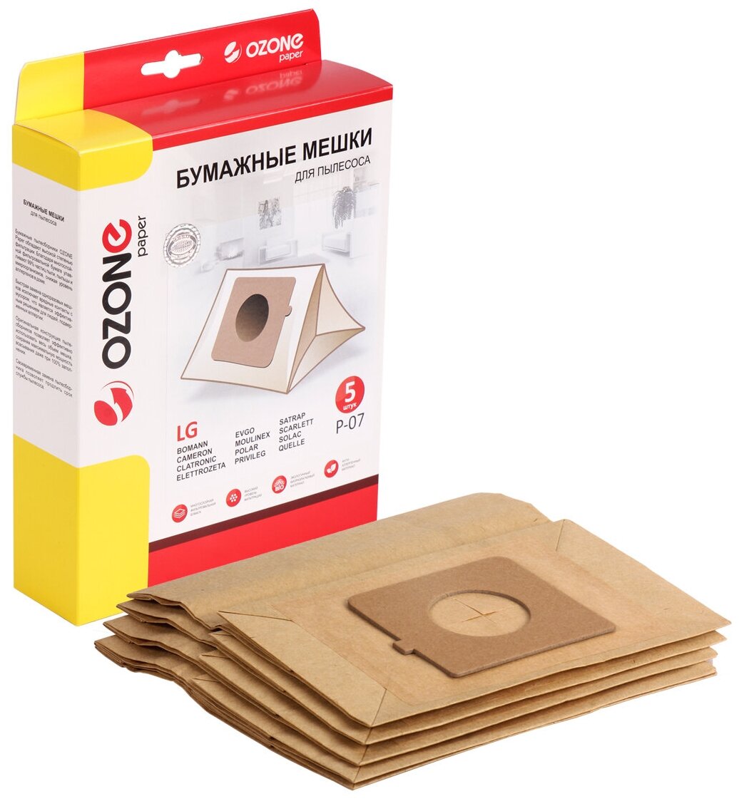 P-07 Мешки-пылесборники Ozone бумажные для пылесоса, 5 шт информация: