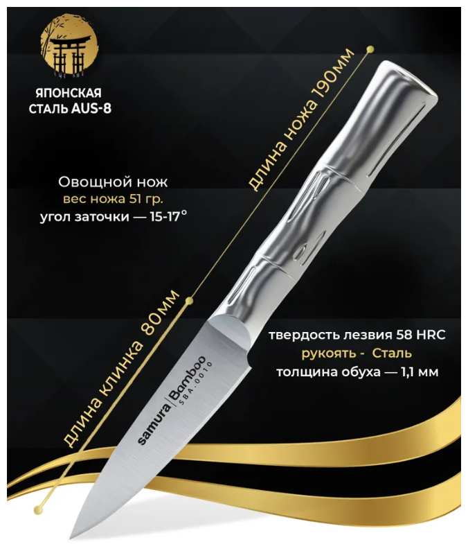 Отзывы на Нож для чистки и нарезки овощей и фруктов / овощной нож кухонный Samura BAMBOO 80мм SBA-0010