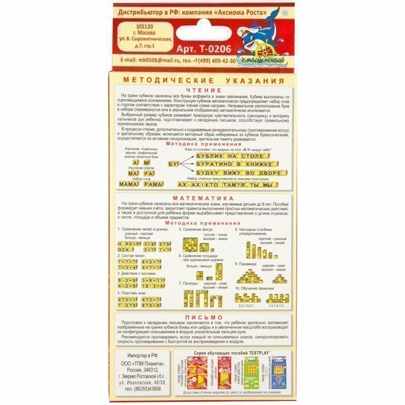 Учебное пособие Testplay "Умные кубики абвгдейка" для обучения чтению и математике информация: