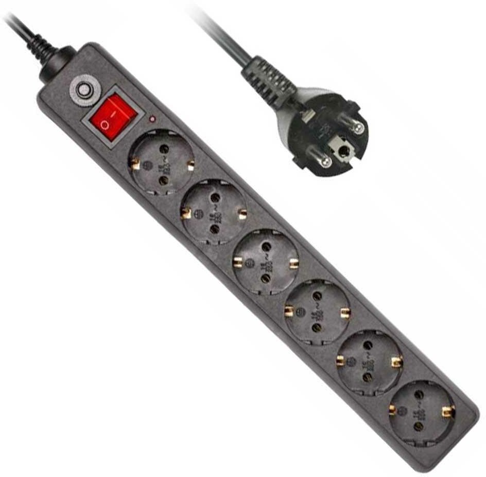 Сетевой фильтр MOST Real RG, черный, 6 розеток, 10 м, с/з, 10А / 2200 Вт