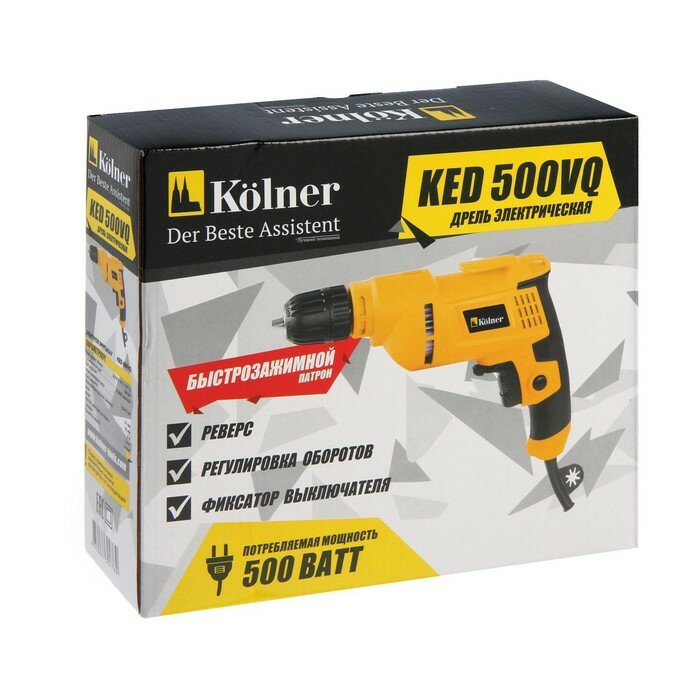 10 цен на Дрель Kolner KED 500VQ, электрическая, 500 Вт, 0-2800 об/мин, БЗП 0.8-10 мм, реверс