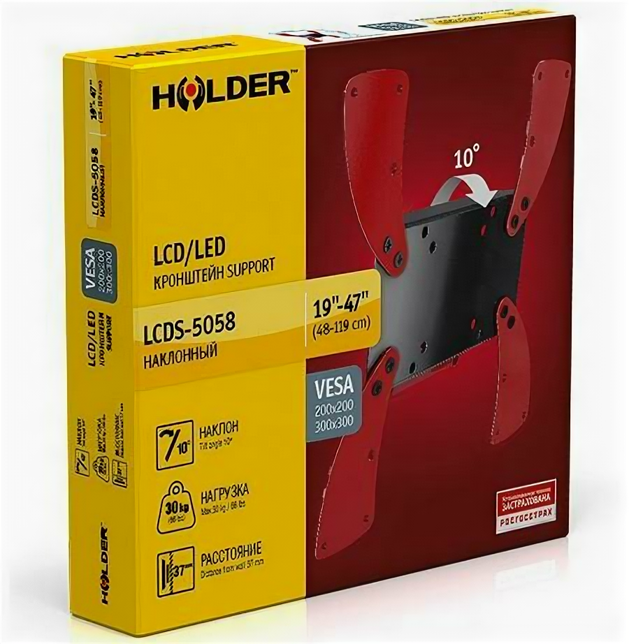 Кронштейн Holder LCDS-5058 черно-красный для ЖК ТВ 19-37 настенный от стены 37мм наклон 10° VESA 300x300 до 30 кг информация: