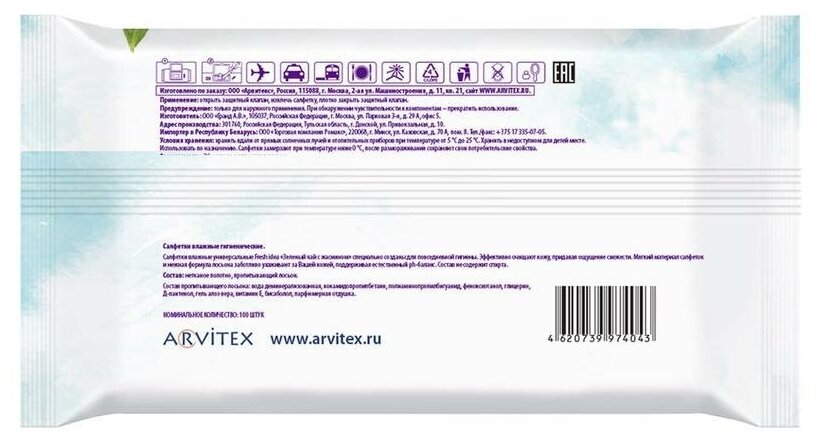 Влажные салфетки освежающие Fresh Idea, зеленый чай, 80+20 штук