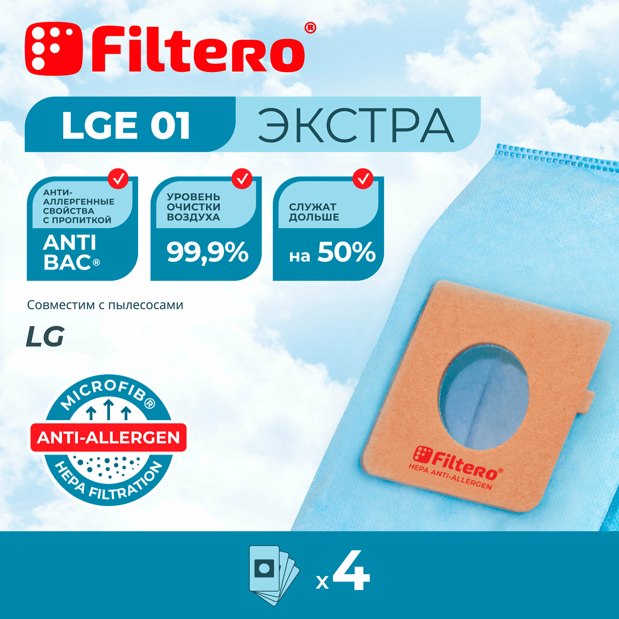 Мешки для пылесосов LG, Cameron, Clatronic, Evgo, Polar Filtero LGE 01 экстра (4 штуки) (PN: LGE 01). информация: