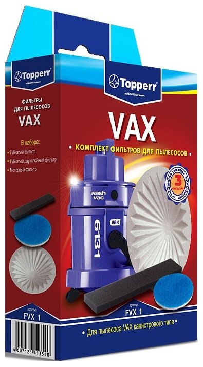 Topperr Комплект фильтров для пылесосов канистрового тира VAX, 3 шт., FVX 1