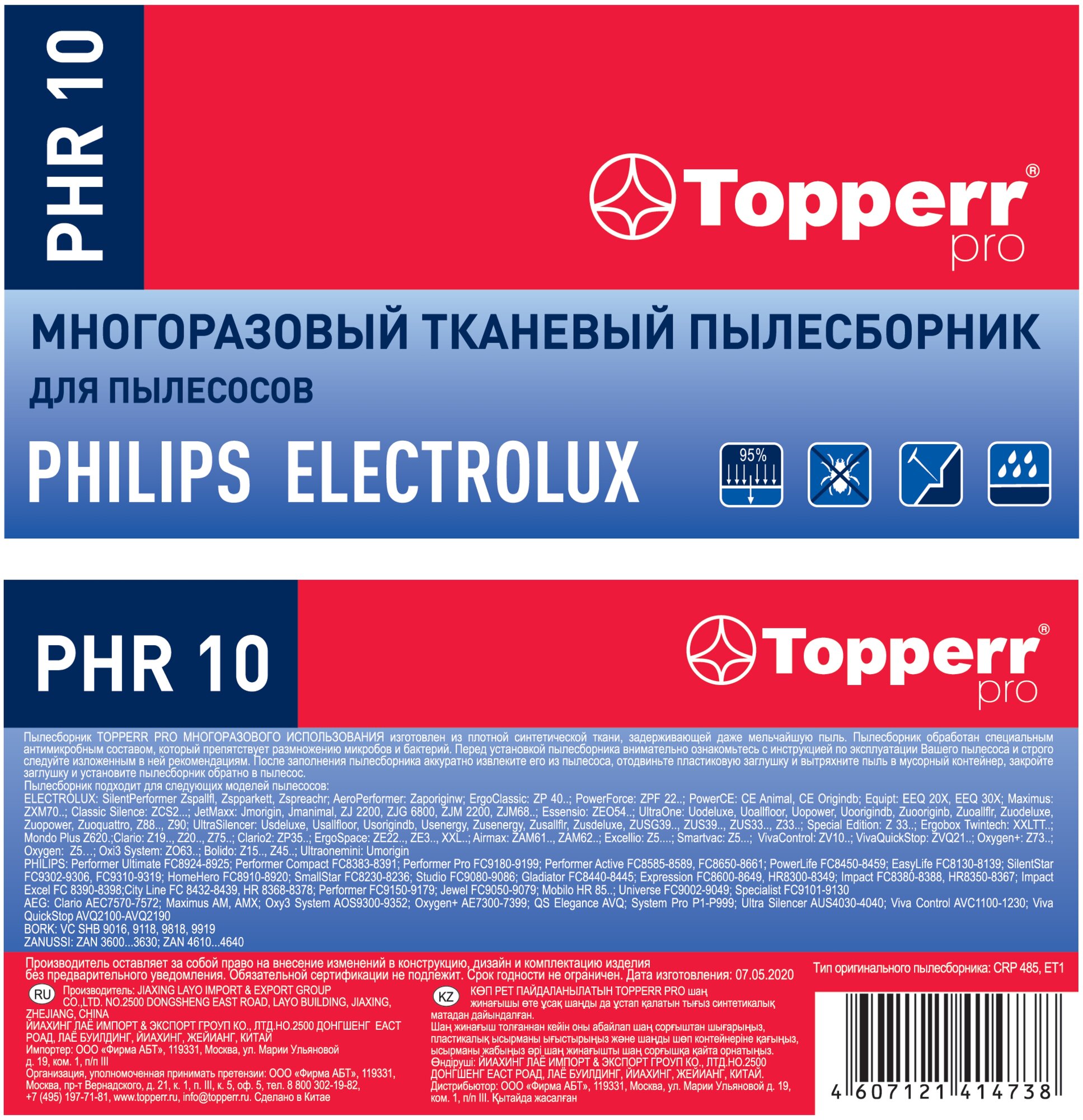 Многоразовый пылесборник Topperr PHR10 для пылесосов Philips, Electrolux