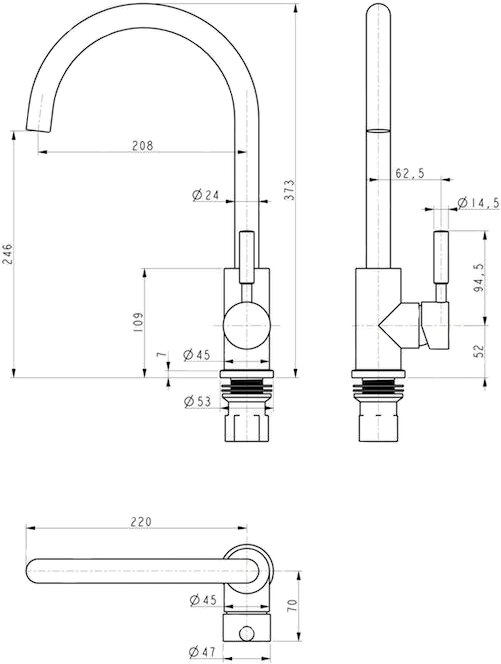 | Высота излива | 246 мм / 373 мм |