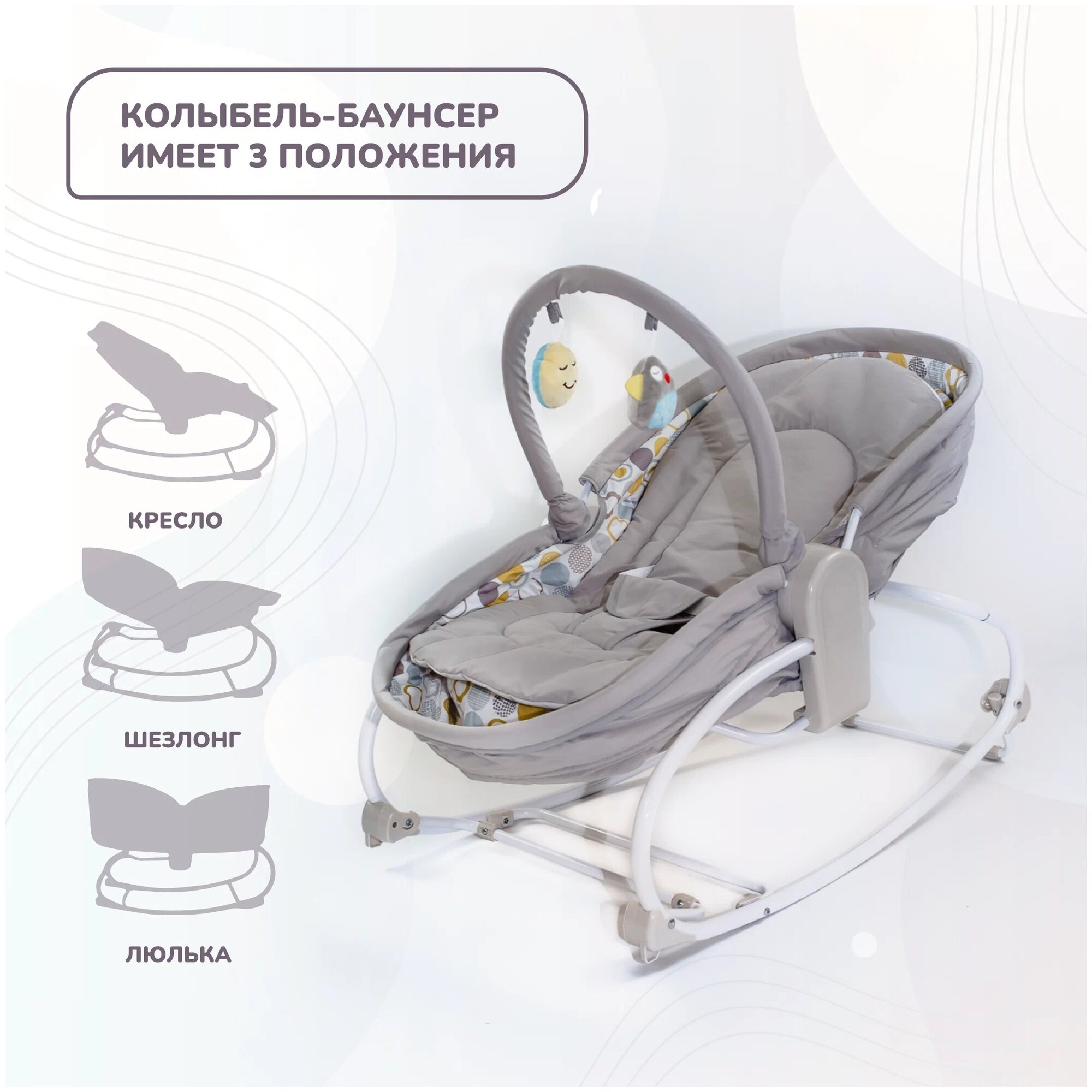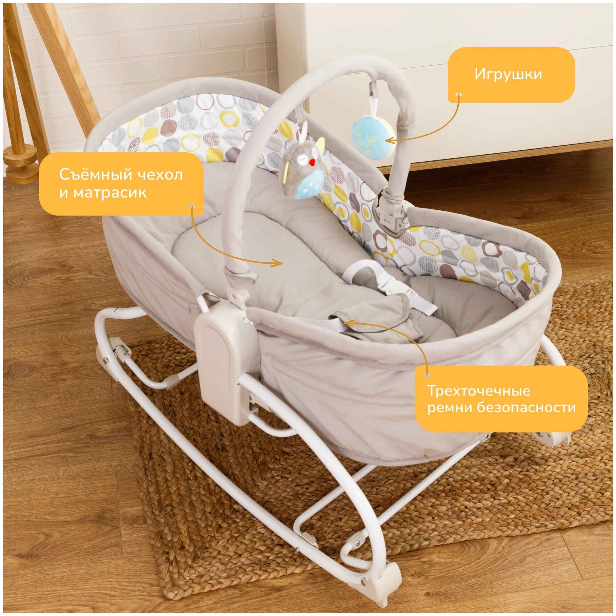 Электрокачели для новорожденного кресло качалка новогодние подарки, для малыша до 12 кг, с пультом управления, серый