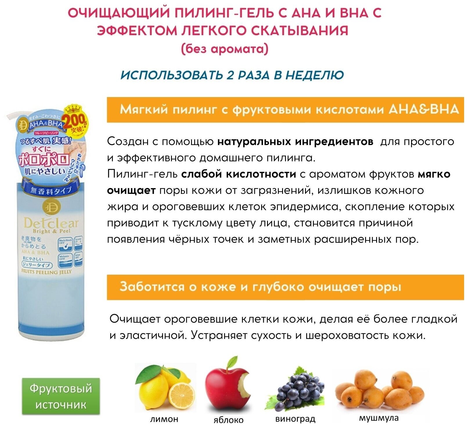 Meishoku пилинг-гель для лица Detclear Fruits peeling jelly с AHA и BHA с эффектом легкого скатывания 180 мл