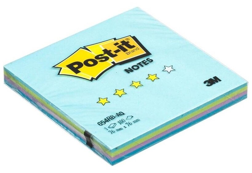 10 цен на Стикеры (самоклеящийся блок) 3M Post-it Classic "Радуга Акватик", 76x76мм, 4 цвета, 100 листов (654RB-AQ)