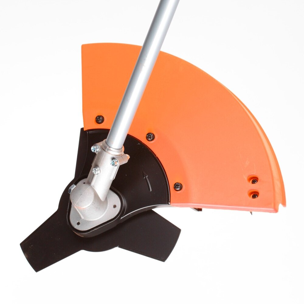 | Подробная комплектация | двигатель в сборе с рукояткой управления, трансмиссионный узел в сборе, рукоятка (левая часть), ранцевый ремень, защитный кожух с крепежной планкой, триммерная катушка, 3х-лопастной металлический нож, ЗИП комплект для установки триммерного ножа, канистра для приготовления топливной смеси, инструкция по эксплуатации, соединительное звено рукояток Набор крепежа и инструментов для сборки, упаковка |