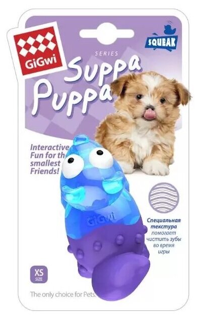 GiGwi SUPPA PUPPA игрушка для собак мелких пород Лиса с пищалкой, синяя, 8 см