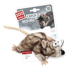 Игрушка для кошек GiGwi Catch & Scratch Мышка (75383), бежевый/коричневый, 1шт.