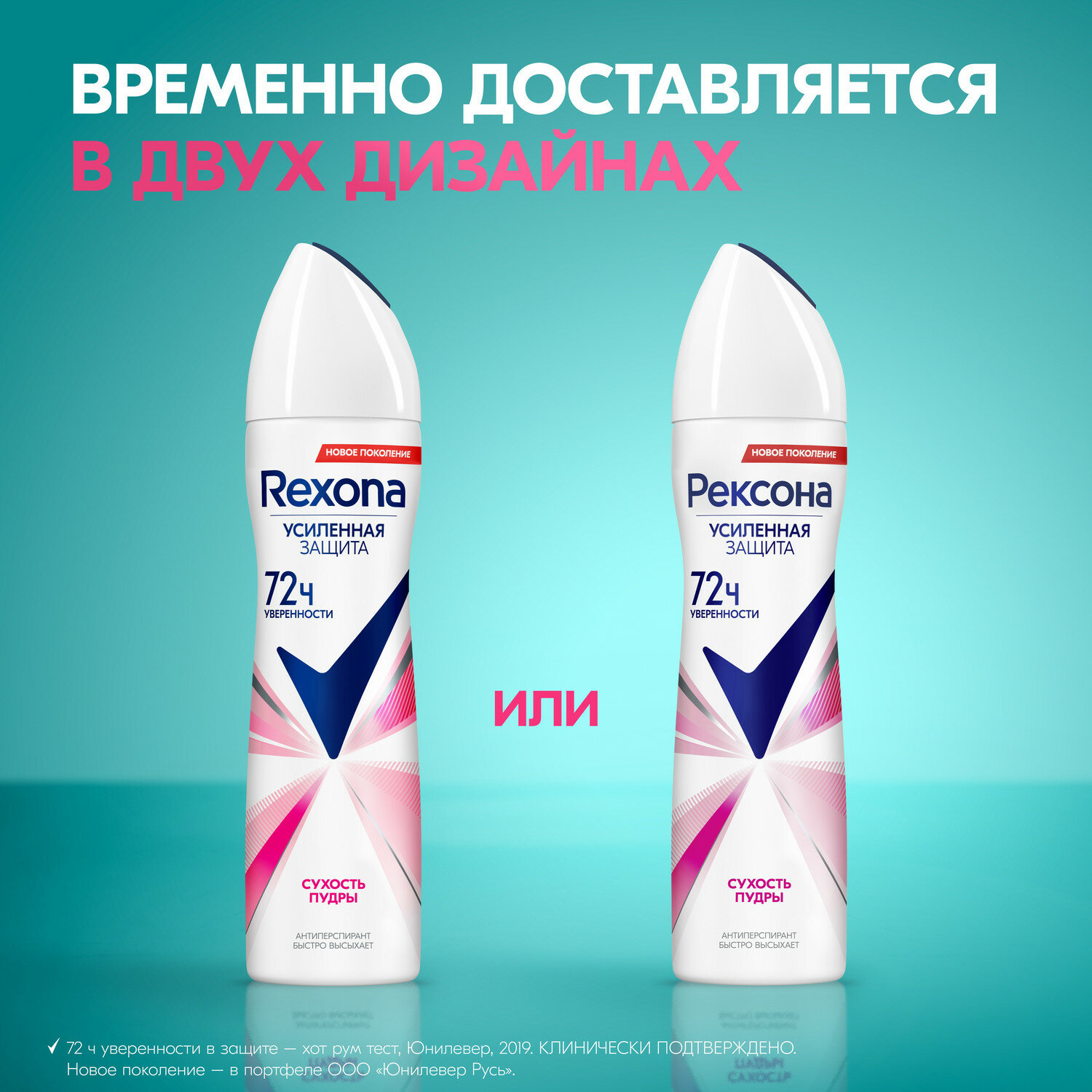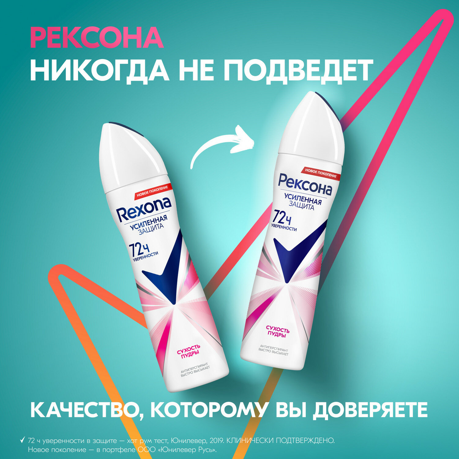 Rexona Дезодорант-антиперспирант аэрозоль Сухость пудры, спрей 72 часа 150 мл - 6 шт 1 714 ₽