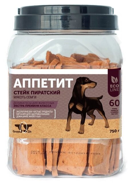 Лакомство для собак GreenQzin Аппетит (стейк из сёмги) туба 750г информация: