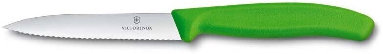 Нож для овощей VICTORINOX Swiss Classic, лезвие из нержавеющей стали 10 см, с волнистой кромкой, зеленая рукоять (6.7736.L4)